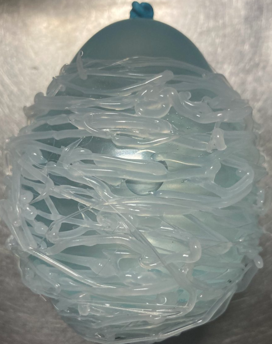 あとは水風船を割るだけ。残るのは球状の半透明なもの。