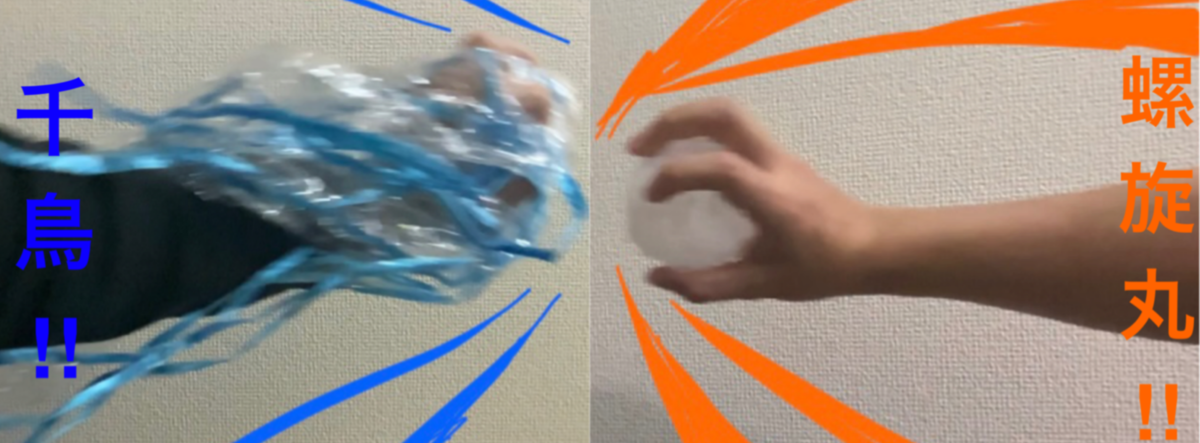 (左の丸いのが螺旋丸、右のバチバチってるのが千鳥)
