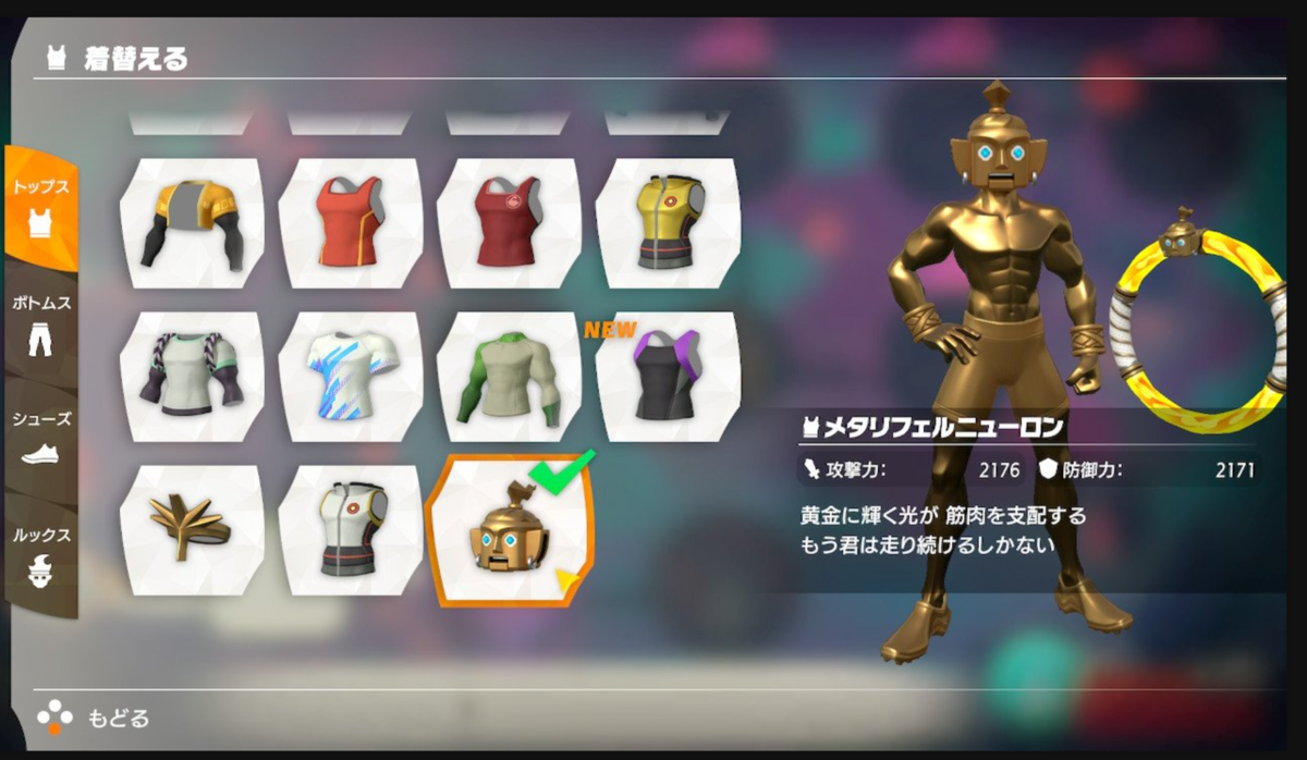運動したくない、怠けたいという欲に抗い、頑張ってリングフィットアドベンチャーを続けた結果、リング君に浸食されてしまうというなんとも残酷なオチです。能力値はいままでで一番高いので最後のワールドはこの衣装でクリアしていくことになります。(もちろん変更は可能ですが)