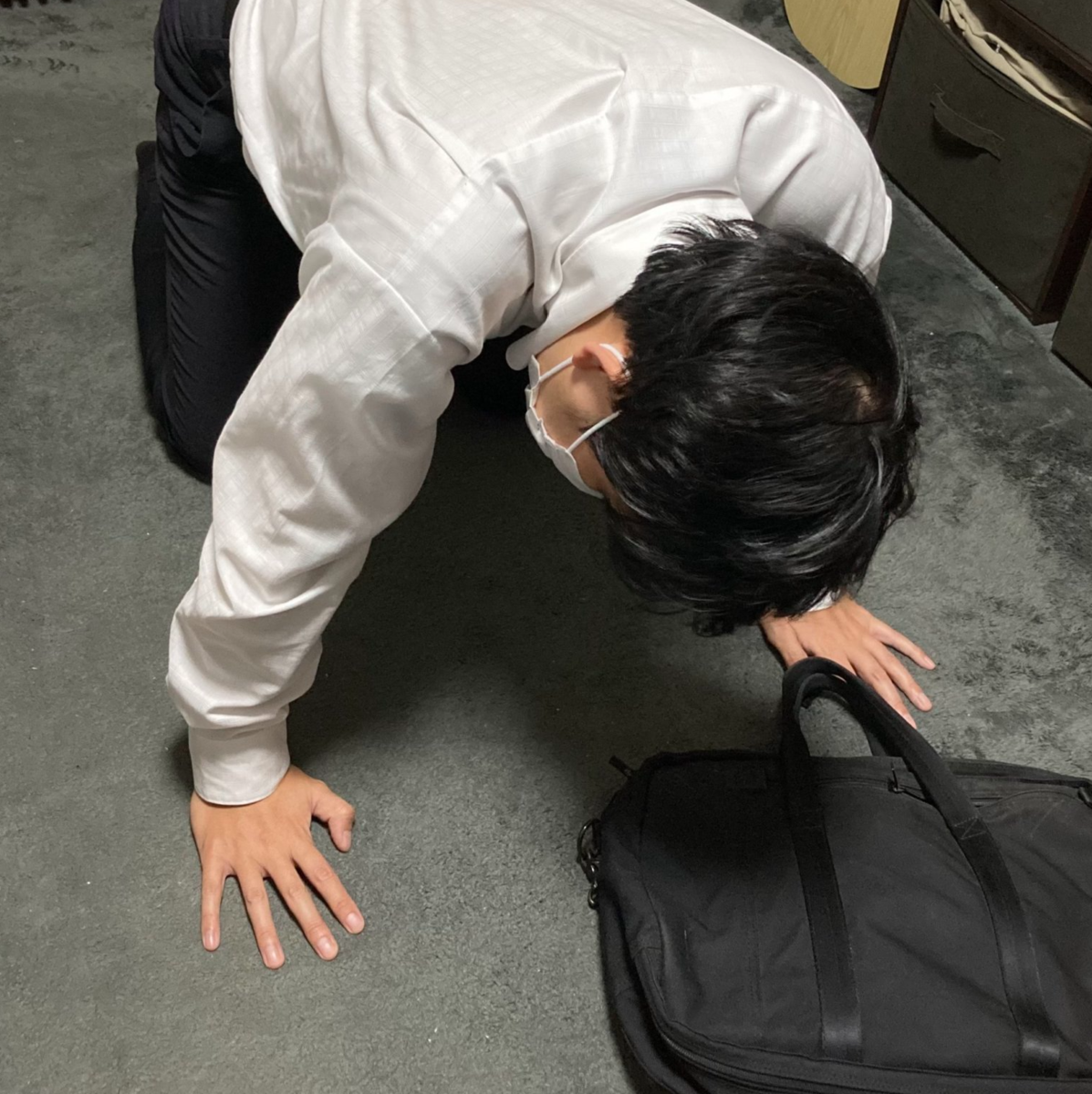比較検証するためにもまずは空腹状態でスパーリングをしてみましょう。疲れ切って空腹な仕事終わりの一般男性を用意しました。