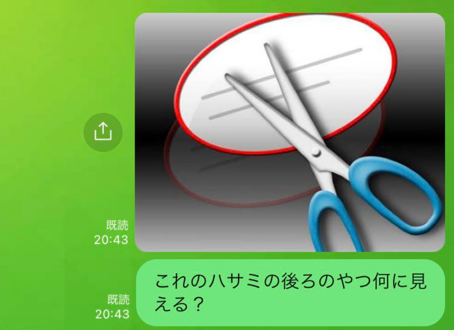 新たな見解。確かに単体で見るとそれっぽく見える。しかしそれだとハサミの意味がよくわからないし組み合わせとして変だ。…いや、もしかしたら彼にとっては別に変じゃないのかもしれない。